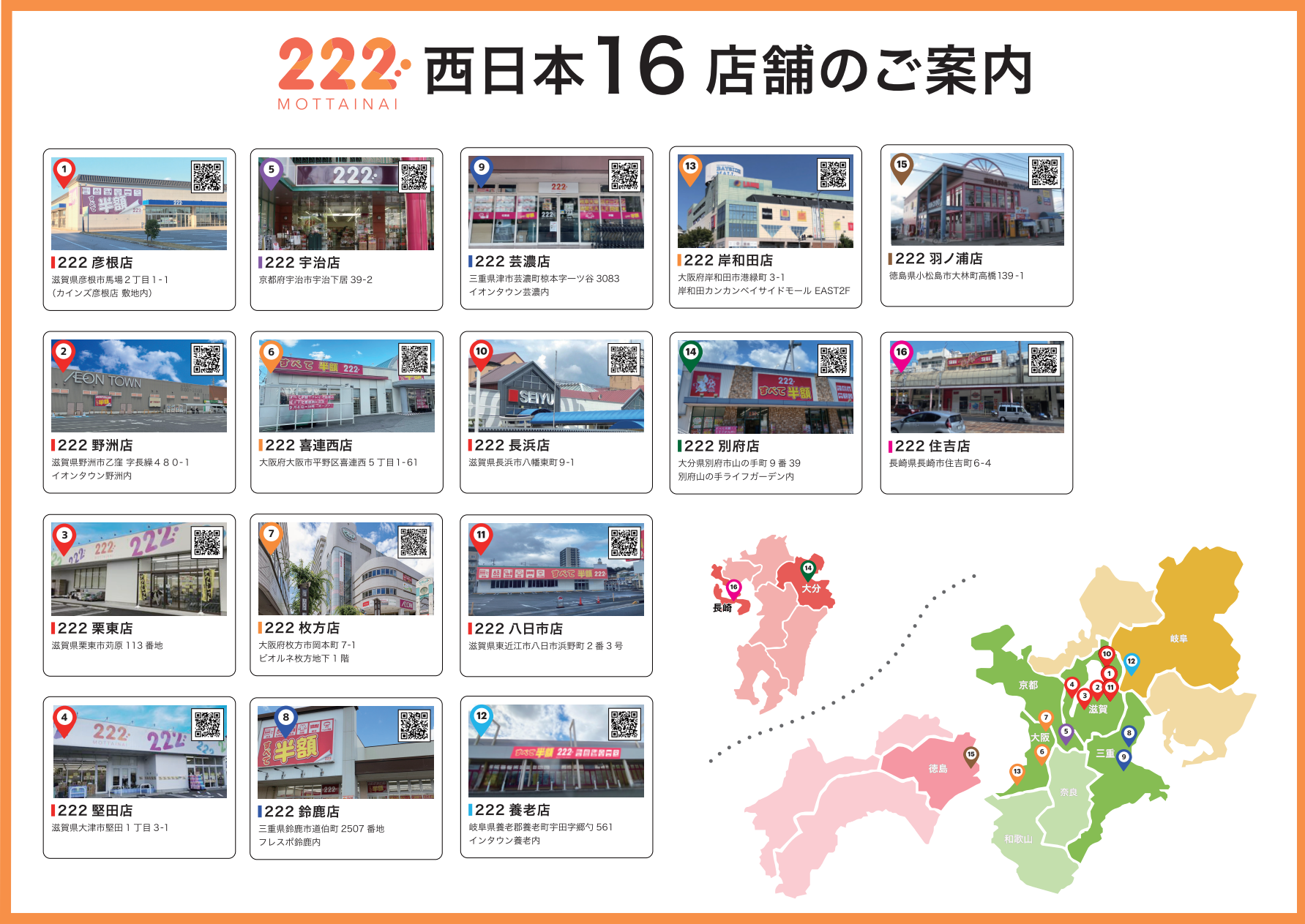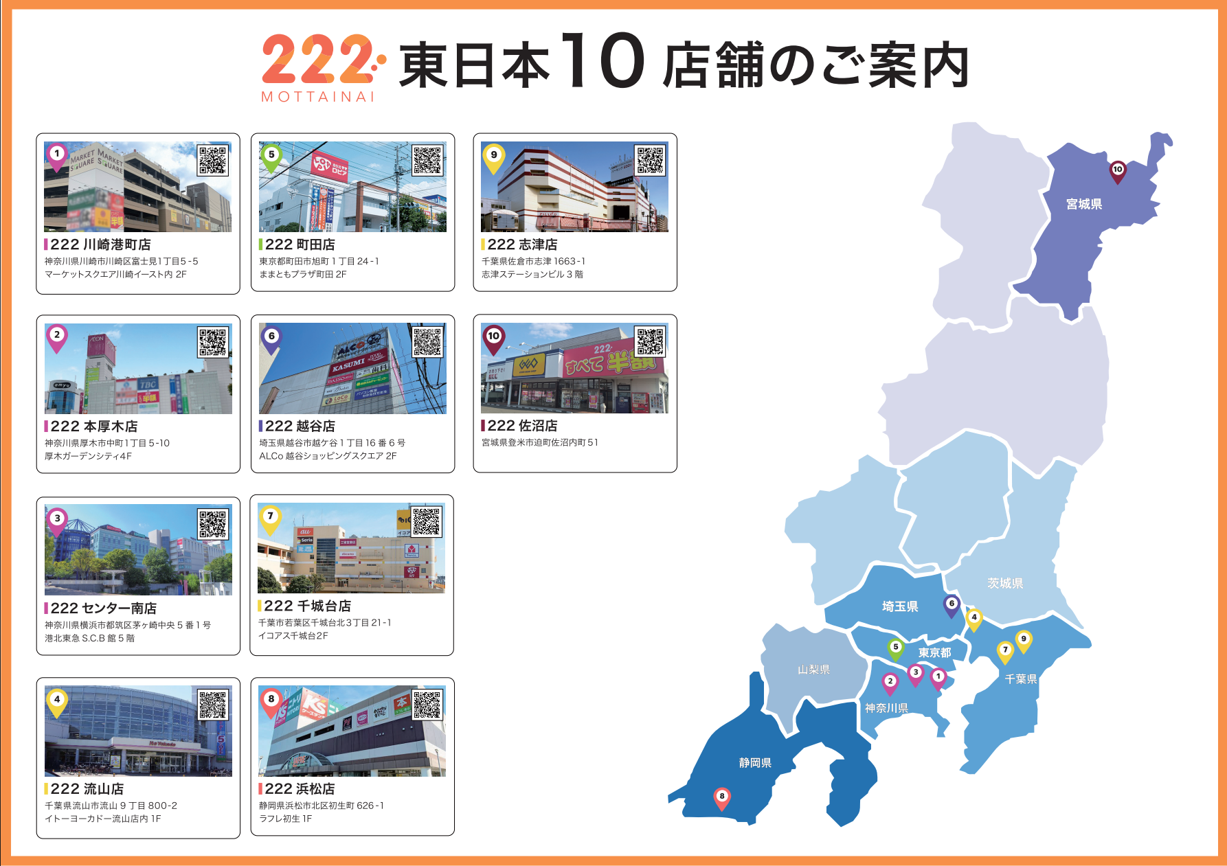 本来であれば廃棄されていたような商品を「もったいない」という精神でもう一度222で販売させていただくことにより、地球環境にもそしてお客様のお財布にも優しいというコンセプトで運営しています。