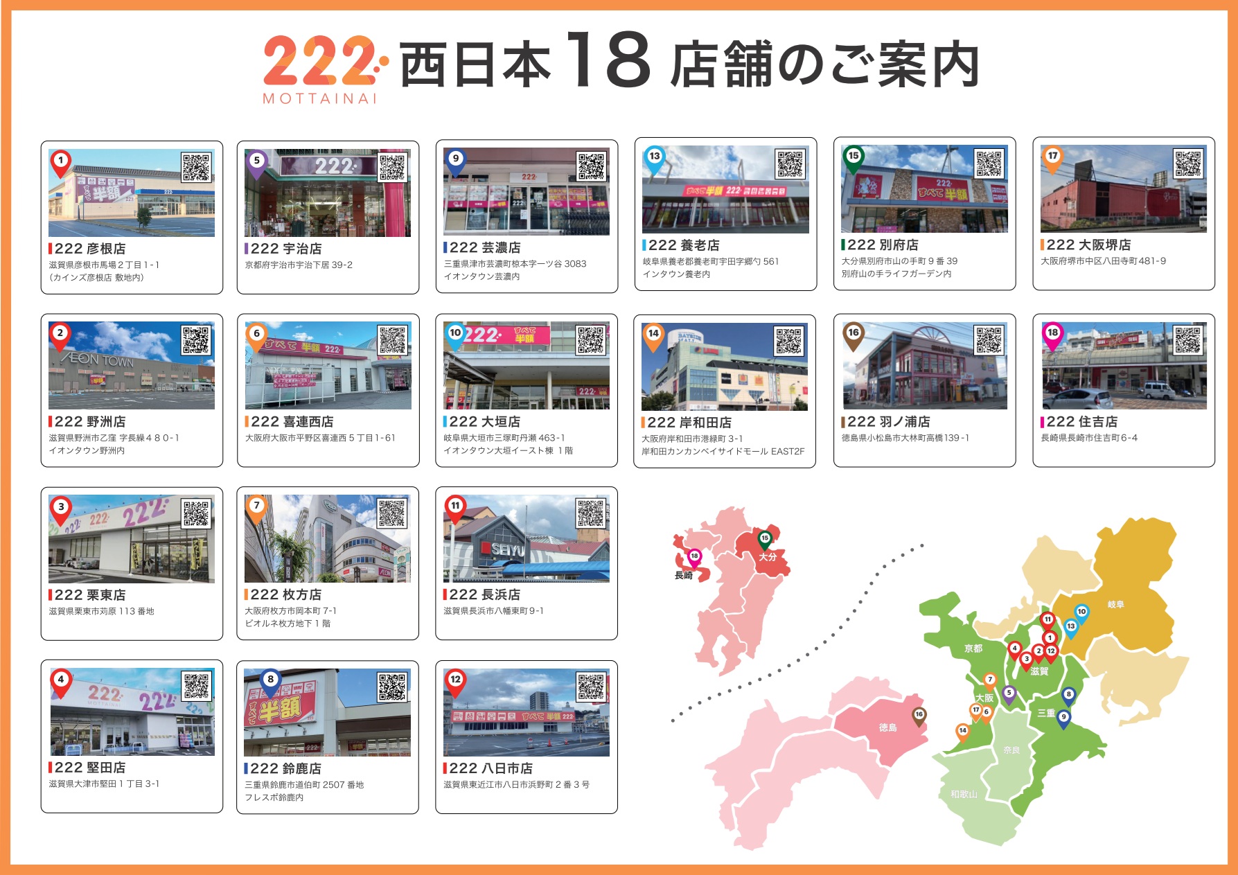 本来であれば廃棄されていたような商品を「もったいない」という精神でもう一度222で販売させていただくことにより、地球環境にもそしてお客様のお財布にも優しいというコンセプトで運営しています。