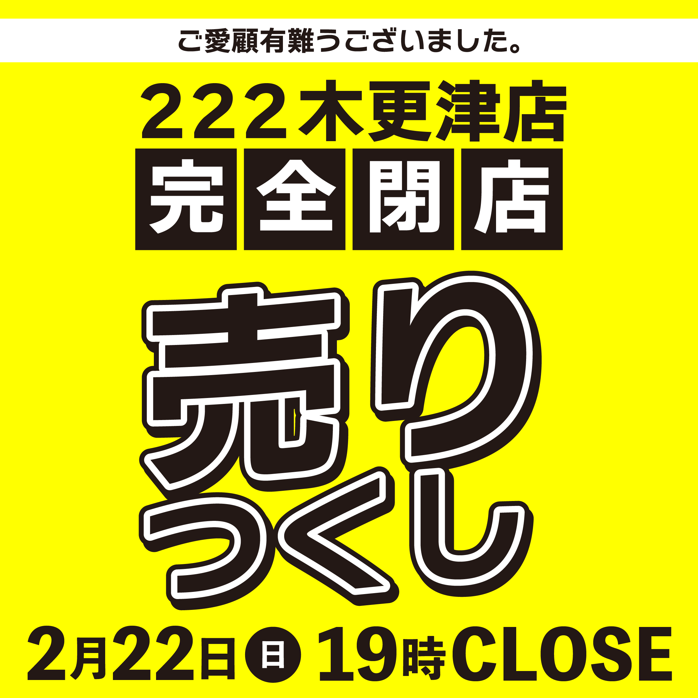 - 222木更津店 閉店のお知らせ